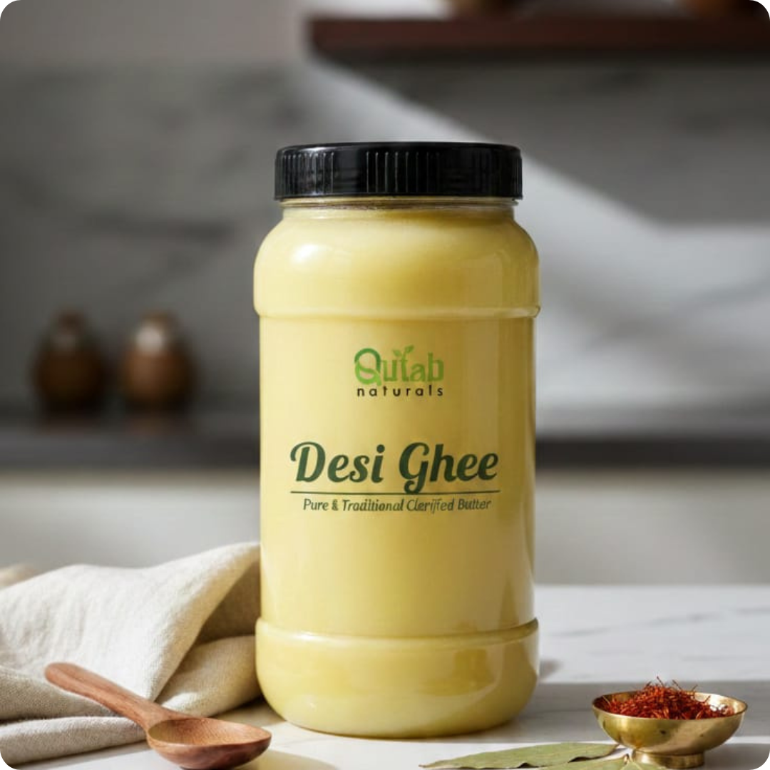 Taste the tradition, feel the purity. Bring home the gold standard—Qutab Naturals Desi Ghee.